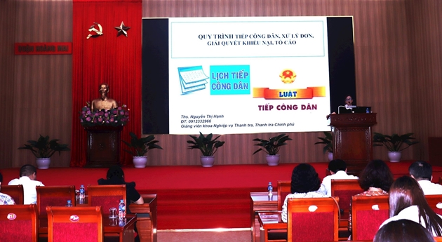 Tại hội nghị, các đại biểu đã nghe bà Nguyễn Thị Hạnh, giảng viên Khoa Nghiệp vụ Thanh tra, Trường Cán bộ Thanh tra, Thanh tra Chính phủ, truyền đạt các nội dung cơ bản của Luật Tiếp công dân, Luật Tố cáo.