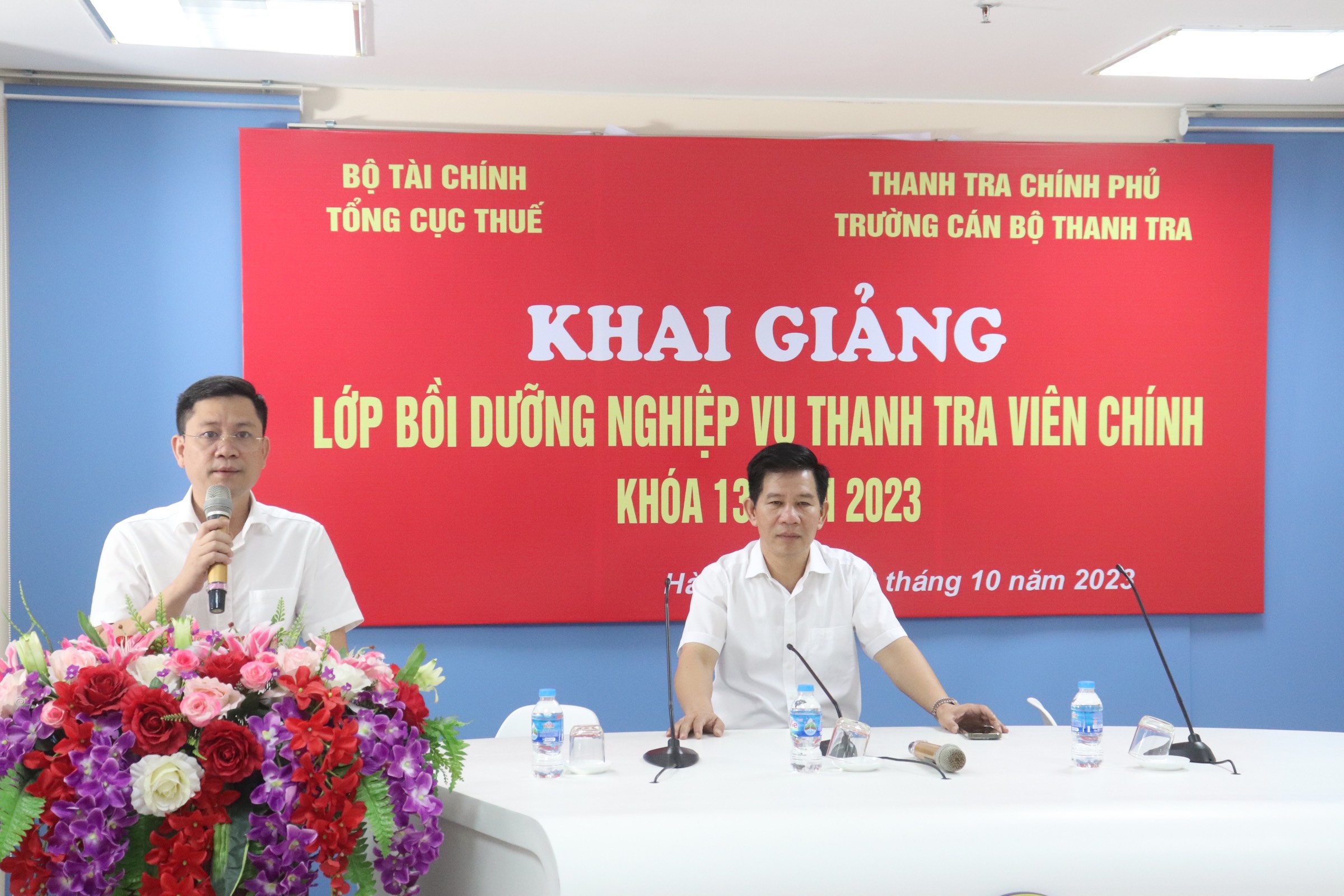 Sáng 10/10, Trường Cán bộ Thanh tra tổ chức Lễ Khai giảng lớp Nghiệp vụ thanh tra viên chính (TTVC) K13/2023 cho Tổng cục Thuế và Cục thuế các tỉnh, thành trong cả nước được Nhà trường tổ chức theo hình thức trực tuyến cho 124 học viên. Thầy Nguyễn Viết Thạch, TTVCC- Phó Hiệu trưởng Trường Cán bộ Thanh tra dự và phát biểu khai giảng khóa học.